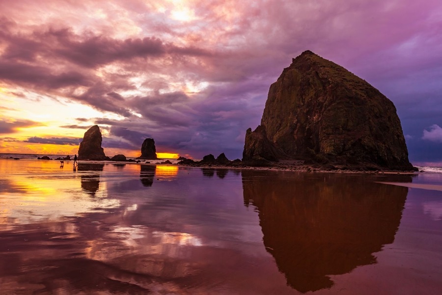 Cannon Beach, ubicada en la costa noroeste de los Estados Unidos, es un destino costero más tranquilo y menos concurrido, pero igualmente impresionante. Famosa por sus grandes formaciones rocosas, como Haystack Rock, esta pequeña ciudad es perfecta para los viajeros que buscan paz y belleza natural.