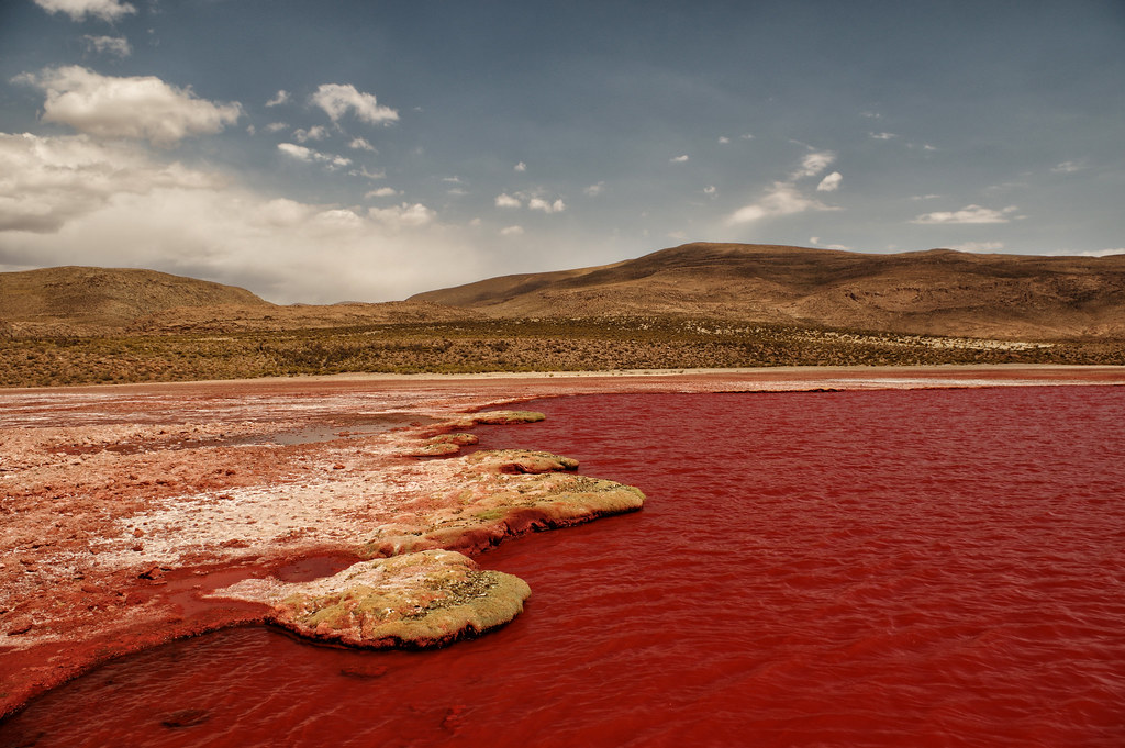 En lo alto de los Andes chilenos, cerca del pueblo de Camiña, se encuentra la misteriosa Laguna Roja (Red Lagoon). Su nombre no engaña: es un cuerpo de agua cuya superficie es de un intenso color rojo sangre, que contrasta dramáticamente con el árido paisaje del altiplano. Su existencia fue un secreto guardado por las comunidades aymaras locales, quienes la consideran un lugar sagrado y evitan acercarse por las leyendas que la rodean.