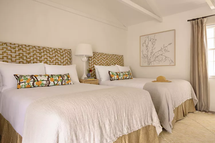 Los baños con duchas a ras de suelo, dignos de Instagram, están revestidos de atrevidos azulejos de estilo mosaico y equipados con exclusivos productos de baño Yuzu & Heirloom. Un porche común con asientos se extiende frente a las habitaciones, asegurando que cada huésped tenga un lugar al aire libre para tomar el sol y disfrutar de las vistas.